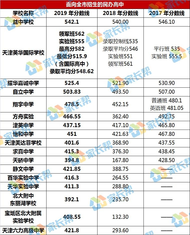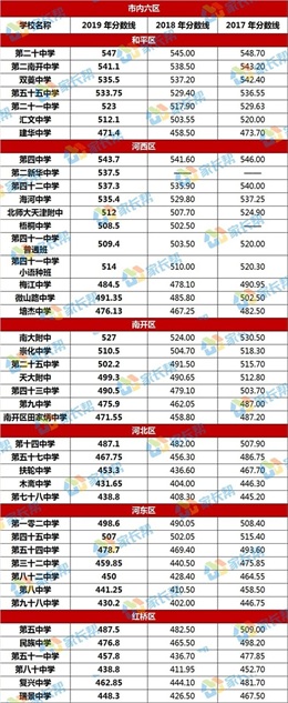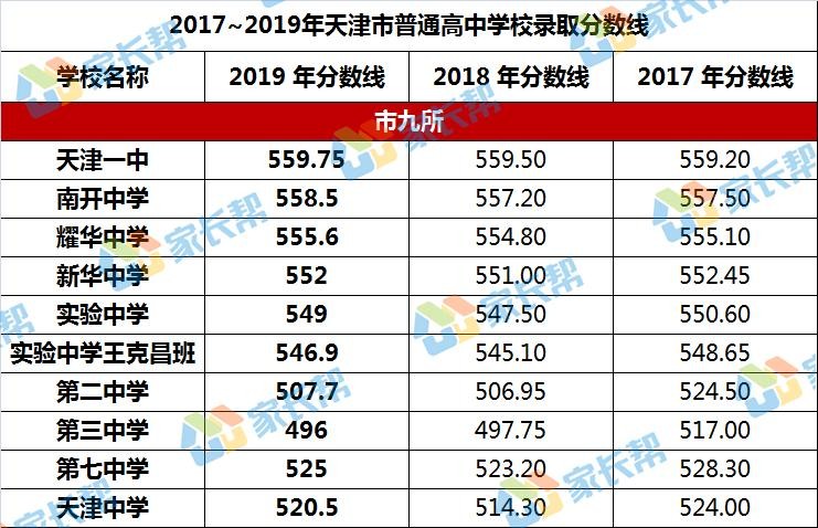 截至目前,2019年天津中考 普通高中学校录取分数线已经公布,小助手在此为大家汇总2017到2019年全市各高中录取分数线对比,方便大家了解最近三年各学校中考招生变化。2019年录取分数线部分数据来自家长分享,可能出现纰漏,还请大家指正。