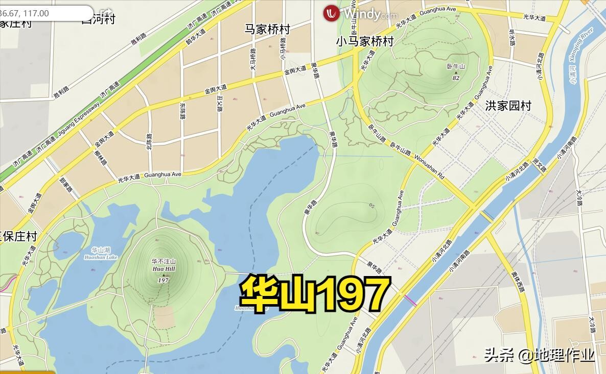 4、华山,又名华不注山。著名画家赵孟頫的《鹊华秋色图》所绘的即是济南鹊山跟华不注山的景色。“润物齐蒸华不注,波涛声震大明湖”中的华不注也是指华山。在佛慧山远眺,东北方向的像金字塔一样的就是华山了。虽然山不高,却十分陡峭。