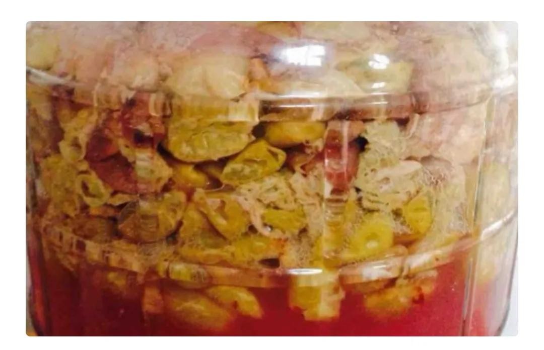 发酵6天后,瓶中充满了气泡,还有些溢出的液体,打开瓶盖,进行放气,然后重新盖上盖子发效。