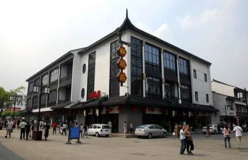 这是金庸小说《天龙八部》中描写段誉从听香水榭逃出后跑到一间酒楼,与乔峰相遇,两人斗酒结义,这家酒楼名字叫“松鹤楼”。书中的松鹤楼位于无锡,而现实中的松鹤楼坐落于苏州。2007年金庸先生造访苏州,到松鹤楼吃饭的时候才知道自己犯了一个常识错误,错把苏州松鹤楼“搬”到无锡了。这也说明在金先生的记忆中对松鹤楼印象很深,写到苏州美食时就把松鹤楼移花接木进了小说里。