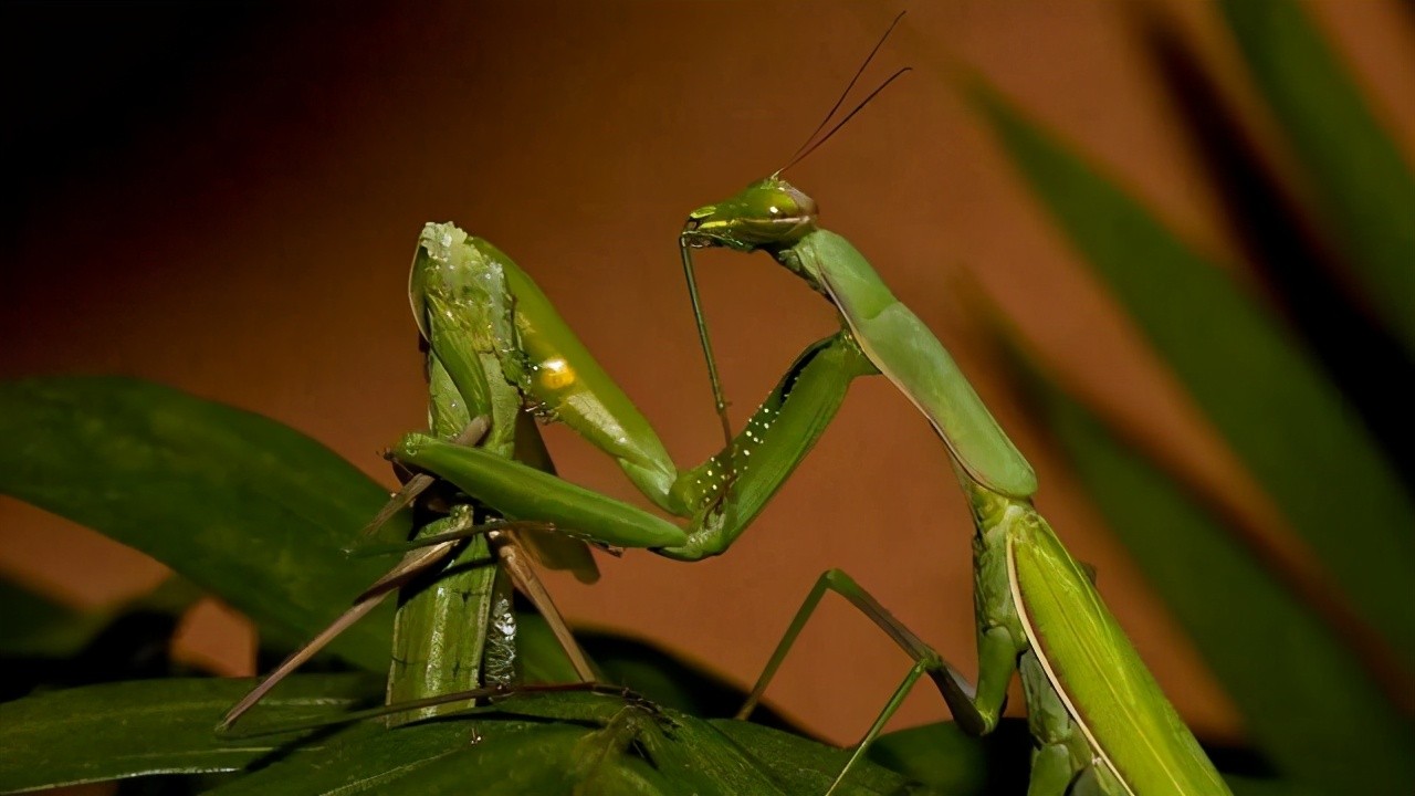 螳螂是独居动物,他们通常独来独往。而且螳螂的脑容量极小,螳螂的生命周期只有6-8个月。可能在它们的世界里,完全没有感情社交,只有进食和繁殖。完全出于本能的行为。也就是我们说的行尸走肉。而且母螳螂的体型要比公螳螂大很多,在公螳螂与其交配时,母螳螂饿了直接就开吃喽!