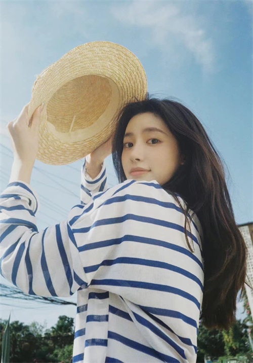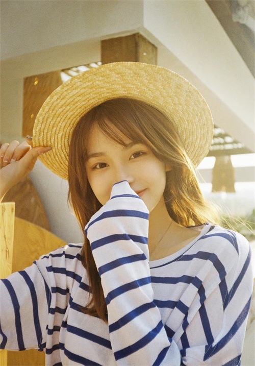 再好看的女生,面对镜头难免都会有点不自信,因此拍摄半身以上的近景照,对面部的遮挡很有必要,学下面的女生一般,一手扶着帽檐,一手对嘴巴稍加遮挡就很好看了。