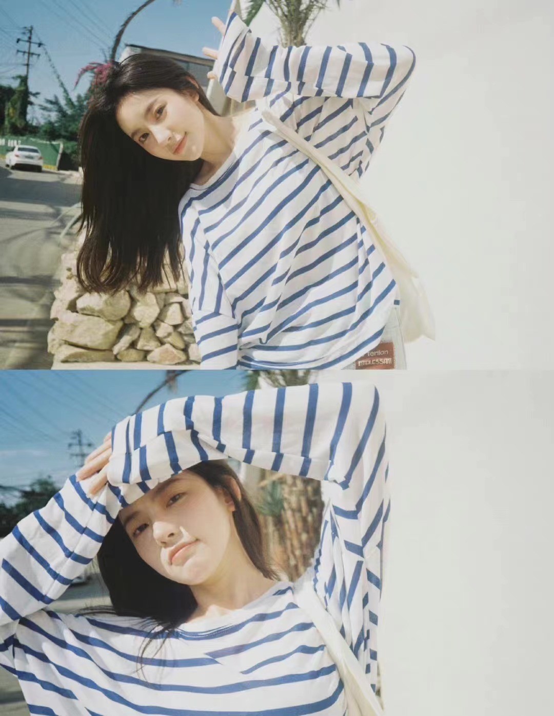 托腮是很多女生常用的姿势,坐着拍照时最为合适,单手或双手托腮都可以,注意手指和面部保持一定的间隙,防止将面部挤变形,再对镜头微微一笑,少女感就出来了。