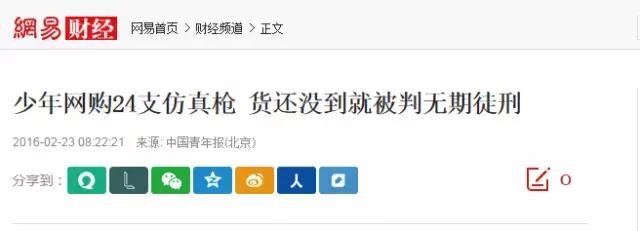 2015年4月,因为从境外买了24把仿真枪,20岁的刘大蔚被泉州市中级人民法院,以走私武器罪,判处无期徒刑。
