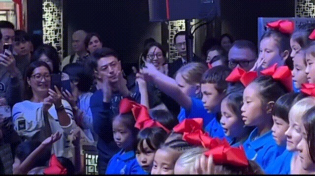 林心如和霍建华的女儿穿着蓝色polo衫,头戴红色蝴蝶结,她是合唱团里的一员。霍建华站在离女儿很近的地方给女儿鼓掌,他是个好爸爸,他看到女儿顺利演出很激动。林心如的女儿长的很像她和霍建华,小姑娘已经长这么大了。