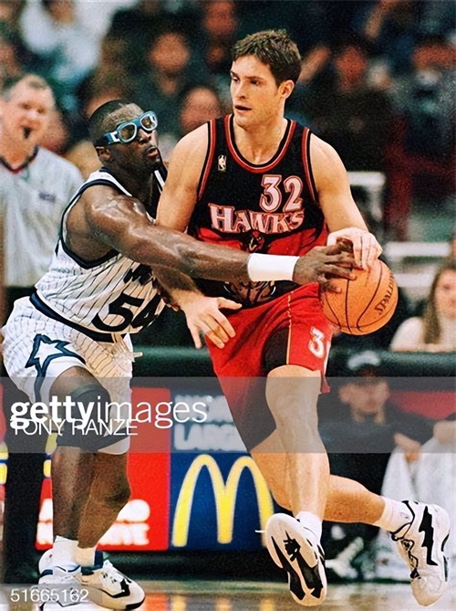1996-97赛季,穆大叔来到亚特兰大,27岁的莱特纳焕发第二春,场均18.1分8.7篮板2.7助攻,参加了唯一一次全明星赛,老鹰豪取56胜。