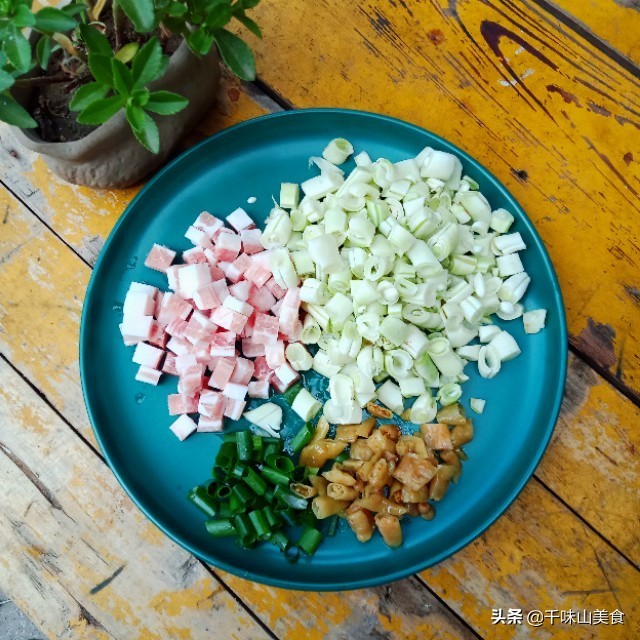 ㈡:锅内加入水烧开,放入1勺盐,放豆角煮3分钟以上捞出控水,接着放入五花肉丁焯水,捞出控水备用!