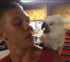 你这一口烟吐得,鹦鹉不把你叨死都是给你面子,看把鹦鹉给呛的