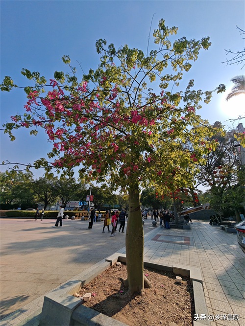 在北方冰天雪地大雪纷飞的寒冷冬季,南国广东省广州市异木棉盛开,眼下正是异木棉盛开的时节。美丽的异木棉花开成为花城广州冬日的一道独特风景。