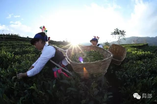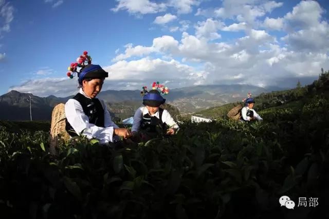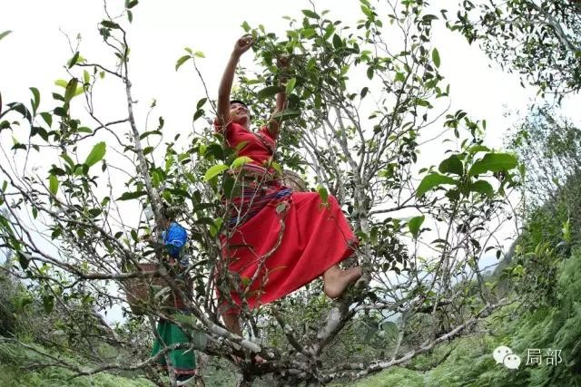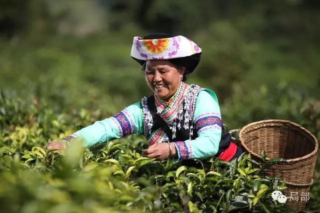 摘春茶的布朗族姑娘。注意,是赤脚。