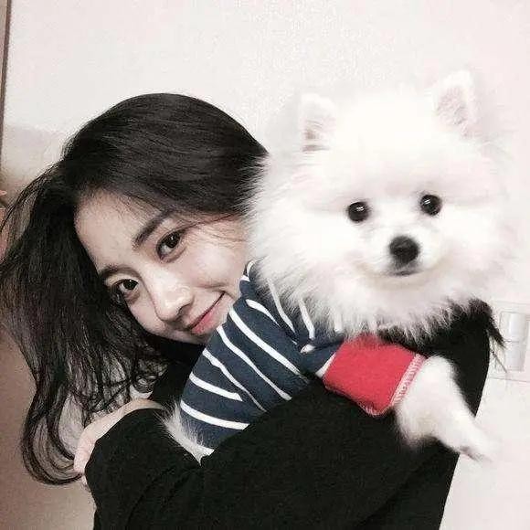 私下的她也是一个萌萌的妹子!一袭黑衣,但与一只白色狗狗合照重现永远的潮流黑白拼色的视觉效果,也是很聪明和有灵感的!