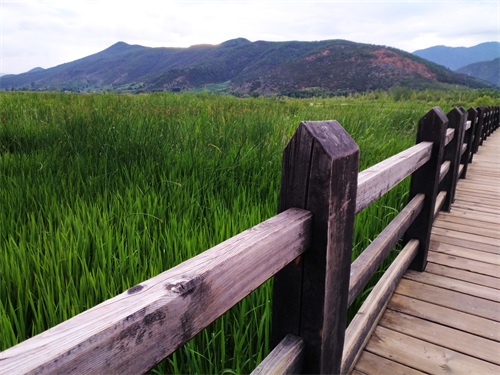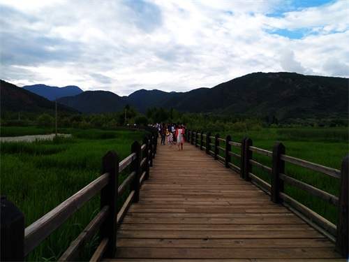 包围着走婚桥的是一大片草海,在夏季的时候满眼都是绿油油的视觉感观,非常漂亮,如果在秋冬季则是枯黄一片