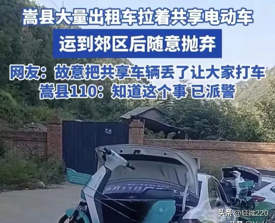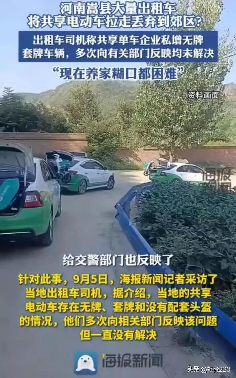 闹大了!洛阳嵩县大批出租车将共享单车拉郊外丢弃 官方介入调查