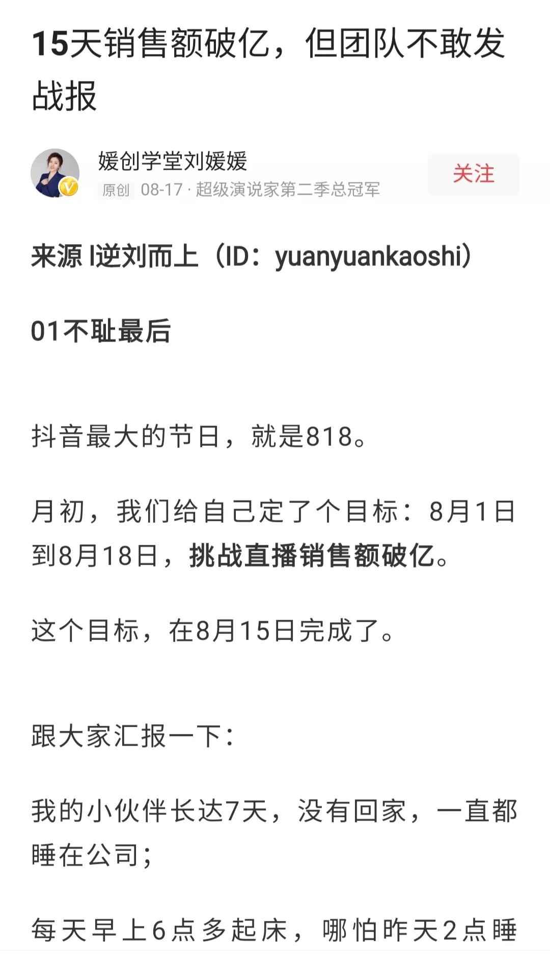 刚刚过去的818,刘媛媛用了15天的时间,达成了直播带货1个亿的目标,可以说非常厉害了。