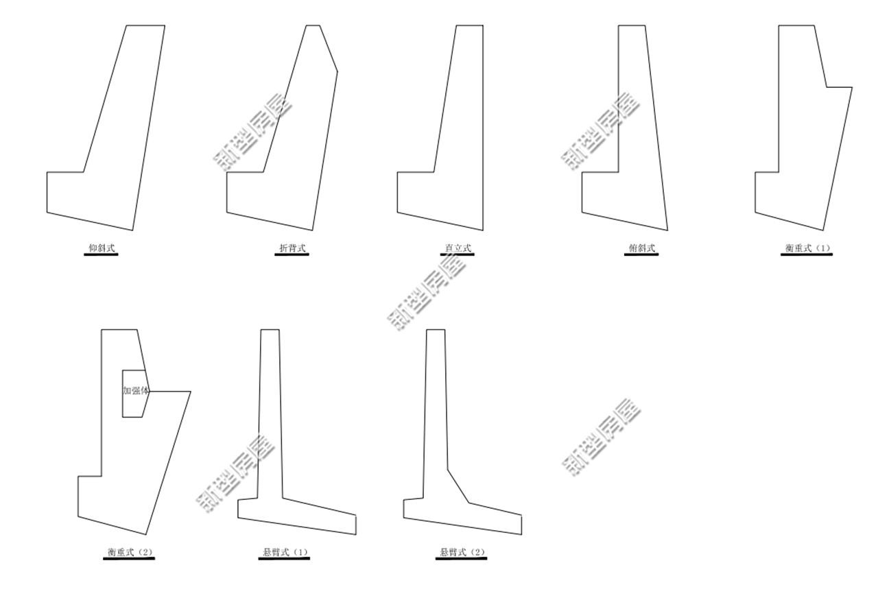 仰斜式折背式直立式俯斜式衡重式悬臂式
