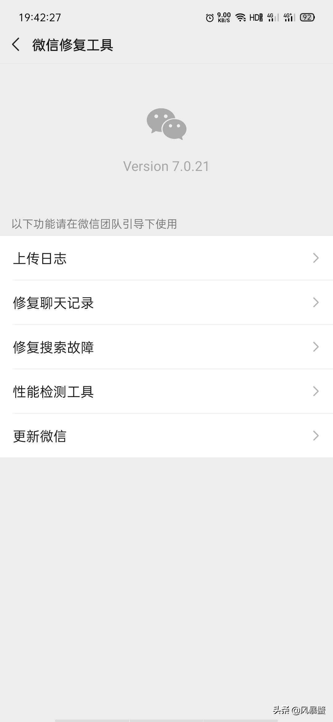 微信里居然隐藏着的故障修复小功能!你可能使用了个假微信,用这这么多年的微信,你知道微信你用的微信有故障修复小工具吗,可以修复 卡顿,闪退,甚至聊天记录丢失都能找回,能让手机变得流畅,你相信吗!