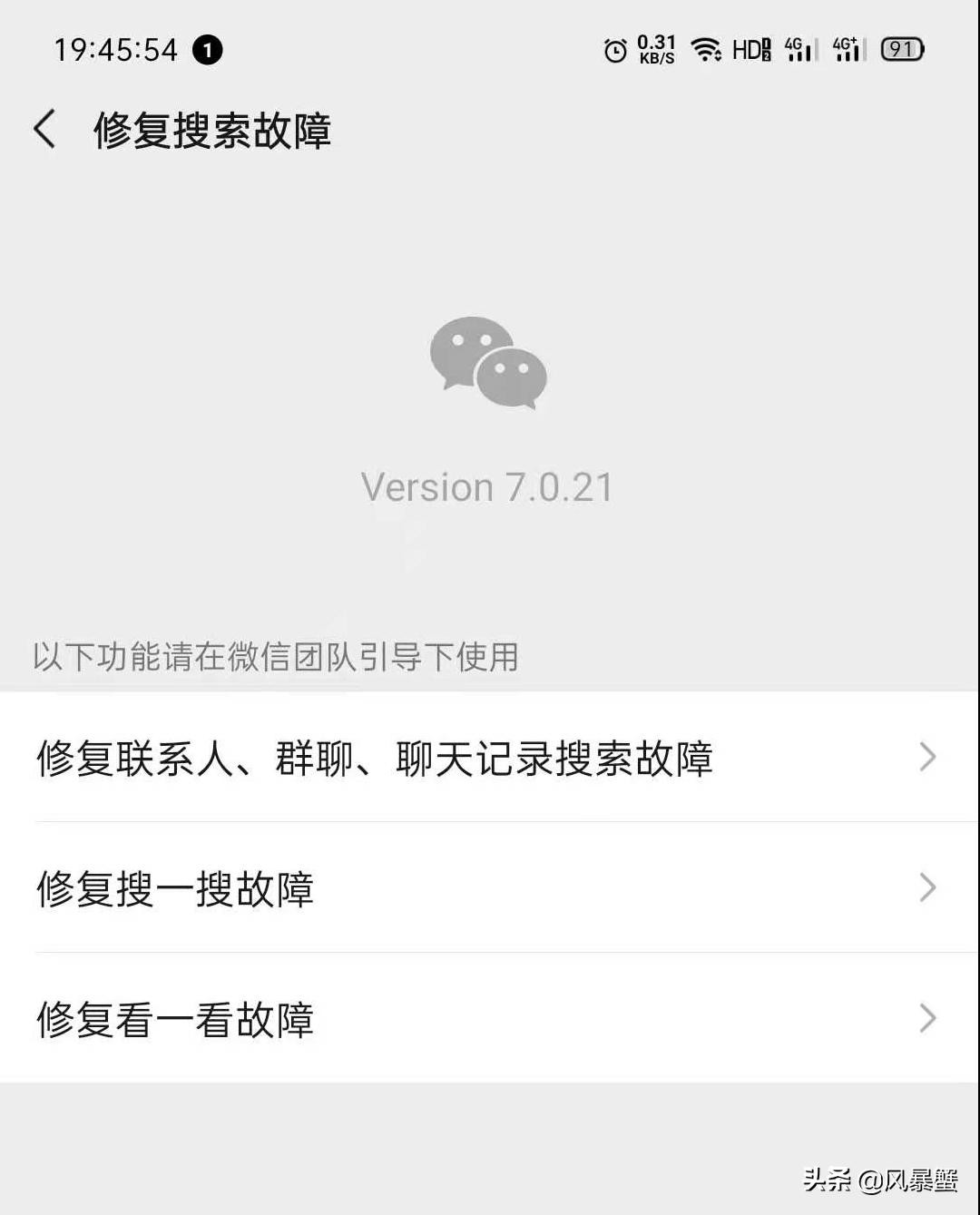 说实话,小蟹我原本是不相信的,直到我尝试的试了一下,发现我还是太年轻了,这微信的这个故障修知道呢藏的太深了,一般人真不知道,当然你看了我的这边文章,你也知道了。