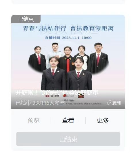 贵州省检察机关积极探索,在搭建网络民意直达通道中推进普法工作,直播时实时与群众互动,及时为网友答疑解惑,提升检察机关服务水平,展现亲民形象。直播覆盖超323万人次,2期直播入选央视频法律融媒体优秀作品,普法案例被纳入省级优秀案例汇编。