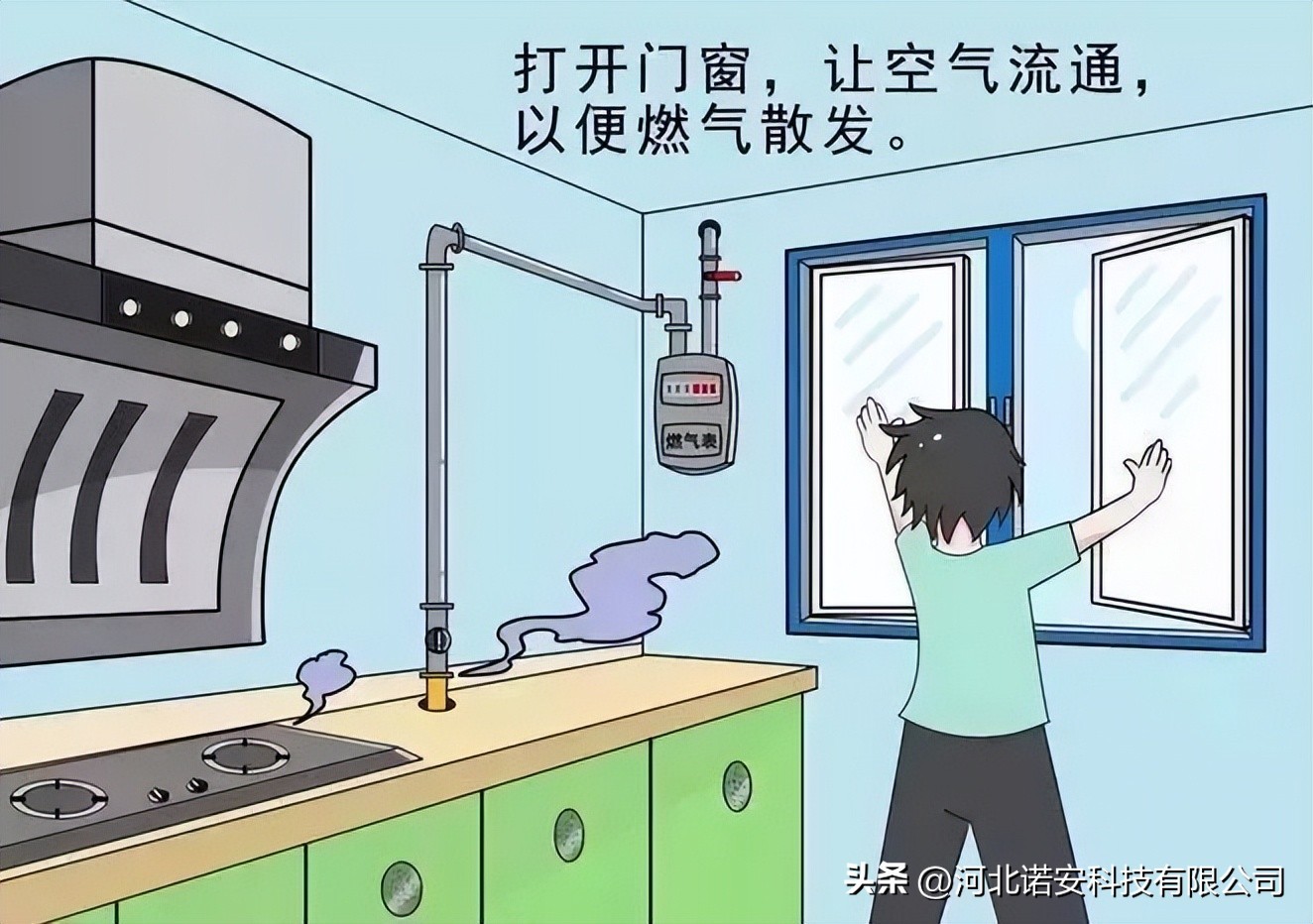 当我们发现天然气泄漏的时候,可以按照下面的步骤进行处理: