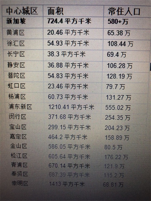 新加坡和上海人口、地域面积大小对比