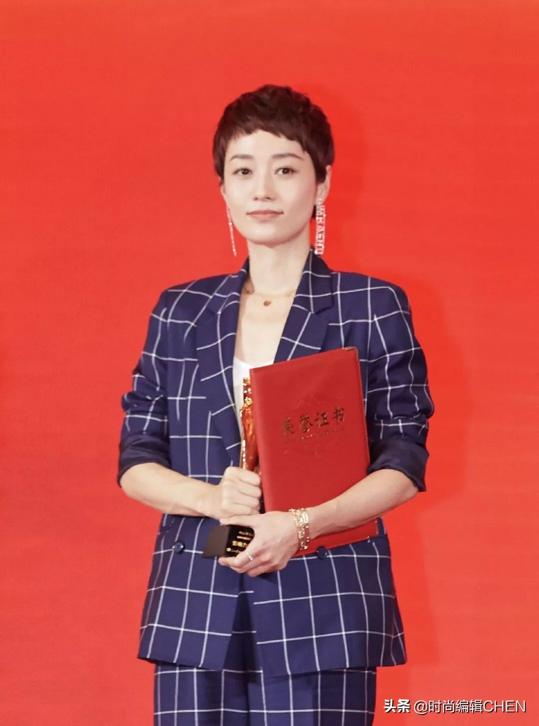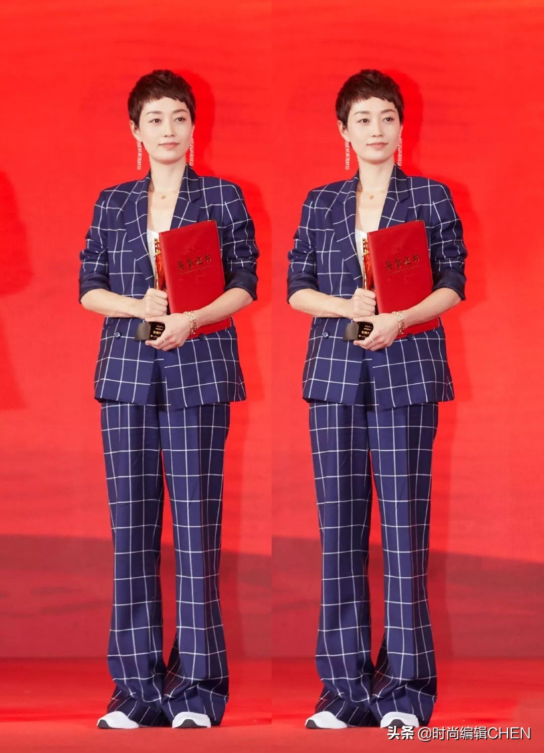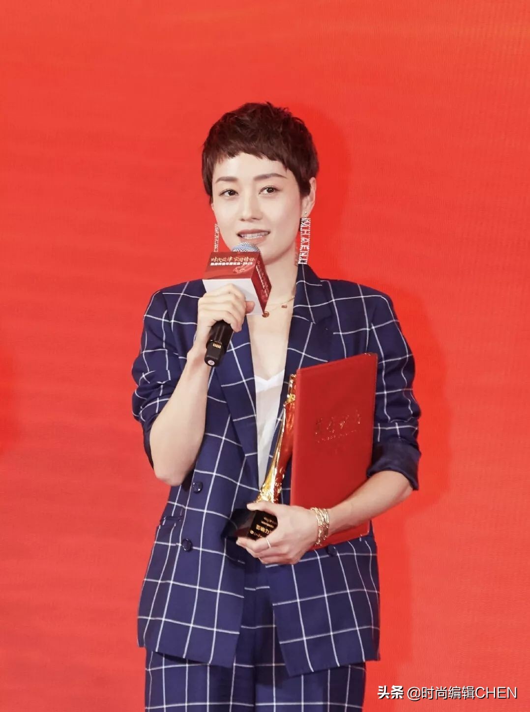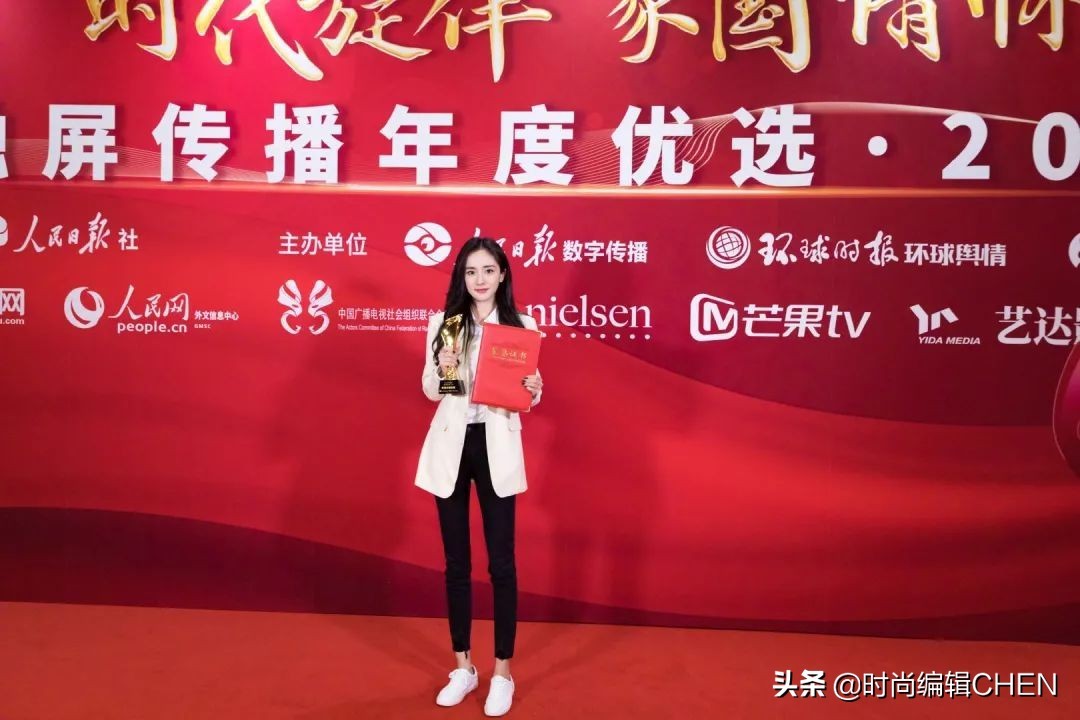 166cm杨幂撞上164cm马伊琍,同穿西装登台领奖,高半头哪像差2cm