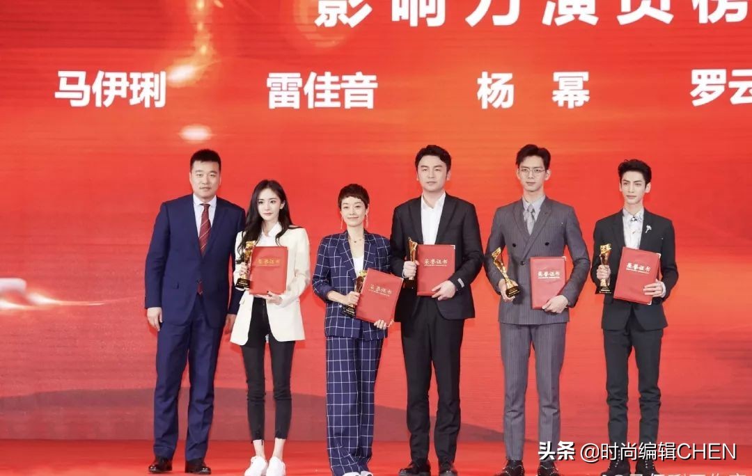 最近由几个媒体联合举办的一个隔屏传播优选,其中李现、罗云熙、雷佳音、马伊琍、杨幂被选为影响力演员,相信在2019年他们几位作品我们都没少看,这个奖项对于他们来说真是实至名归。活动中三位男士都穿着比较常规的黑灰西装,罗云熙和李现穿西装气质帅气,看惯雷佳音的休闲装,他一身西装有种老干部的即视感。