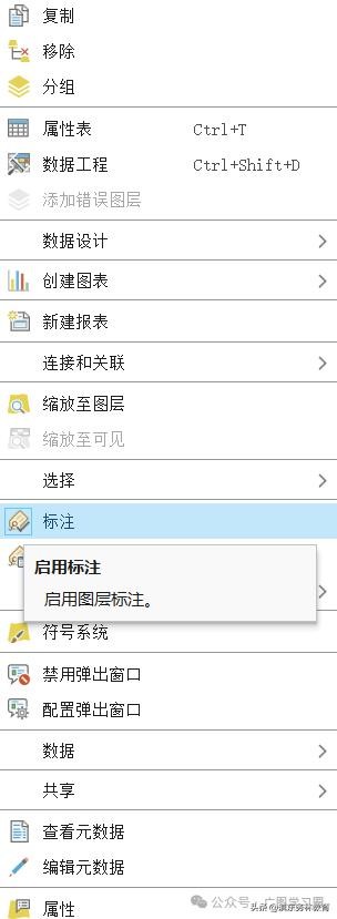 (2)右键点击图层文件,选择“标注”,启动标注功能。
