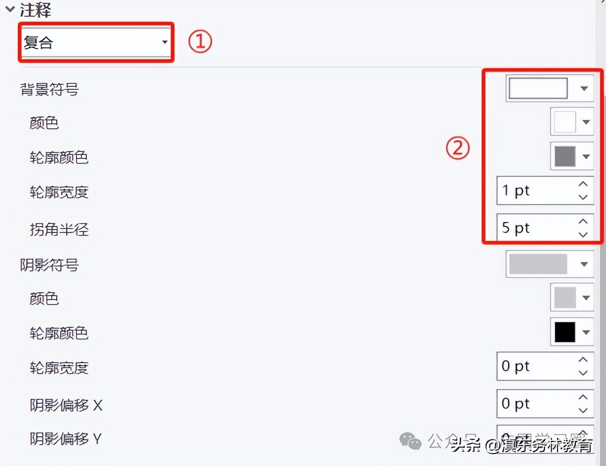 ①注释样式:选择复合,气球也可以,根据需要设置,如果有引线标注需求的,可以选择气球,样式相对多一些。