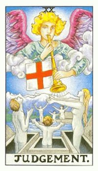 加百列是和心灵感受及想象力有关的大天使, 加百列在西方宗教传统中有极高的地位,是唯一一个在圣经文本中被提到过名字的天使。 有人认为他是女性,但也有人认为所有的天使都没有性别。加百列性格温和,仁慈,但同时他也是司职死亡,启示和复仇的天使。加百列和月亮有关,因此她也跟潜意识的工作相关联。 在一些拉比文学中,加百列被称为正义的王子,会召唤灵魂去接受“最后审判”,因此这张牌出现在第20号牌审判中。 在塔罗解读中,加百列的小号会将我们唤醒,提醒我们去响应内心更高的呼唤,加百列的阴性特质也会暗示情感问题,孕育力,家庭,精神能力等等。 在新月或满月的时候召唤加百列的力量是非常神圣的。