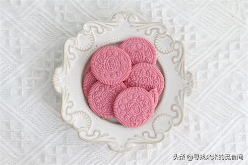 3 樱花奥利奥饼干刮掉奶油夹心。