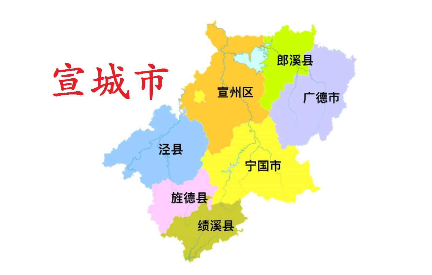 宣城市,简称“宣”,市政府驻宣州区。地处安徽省东南部,长江下游南岸,东与浙江省杭州市、湖州市交界,北与马鞍山市、江苏省南京市、常州市、无锡市接壤,西与池州市、芜湖市毗邻,南与黄山市相连。