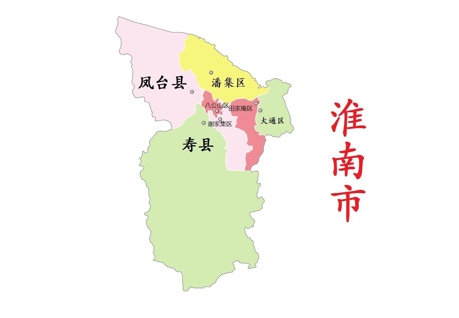 全市总面积5650平方千米,辖5个区(田家庵区、大通区、谢家集区、八公山区、潘集区)、2个县(凤台县、寿县)。 截至2022年底,全市常住人口302.7万人。
