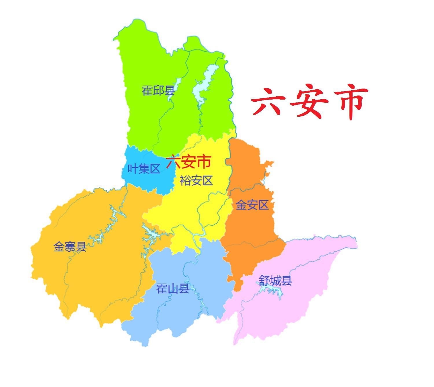 全市总面积15451.2平方千米 ,全市辖3个区、4个县,即金安区、裕安区、叶集区、霍邱县、金寨县、霍山县、舒城县。截至2022年底,六安市常住人口437.9万人。