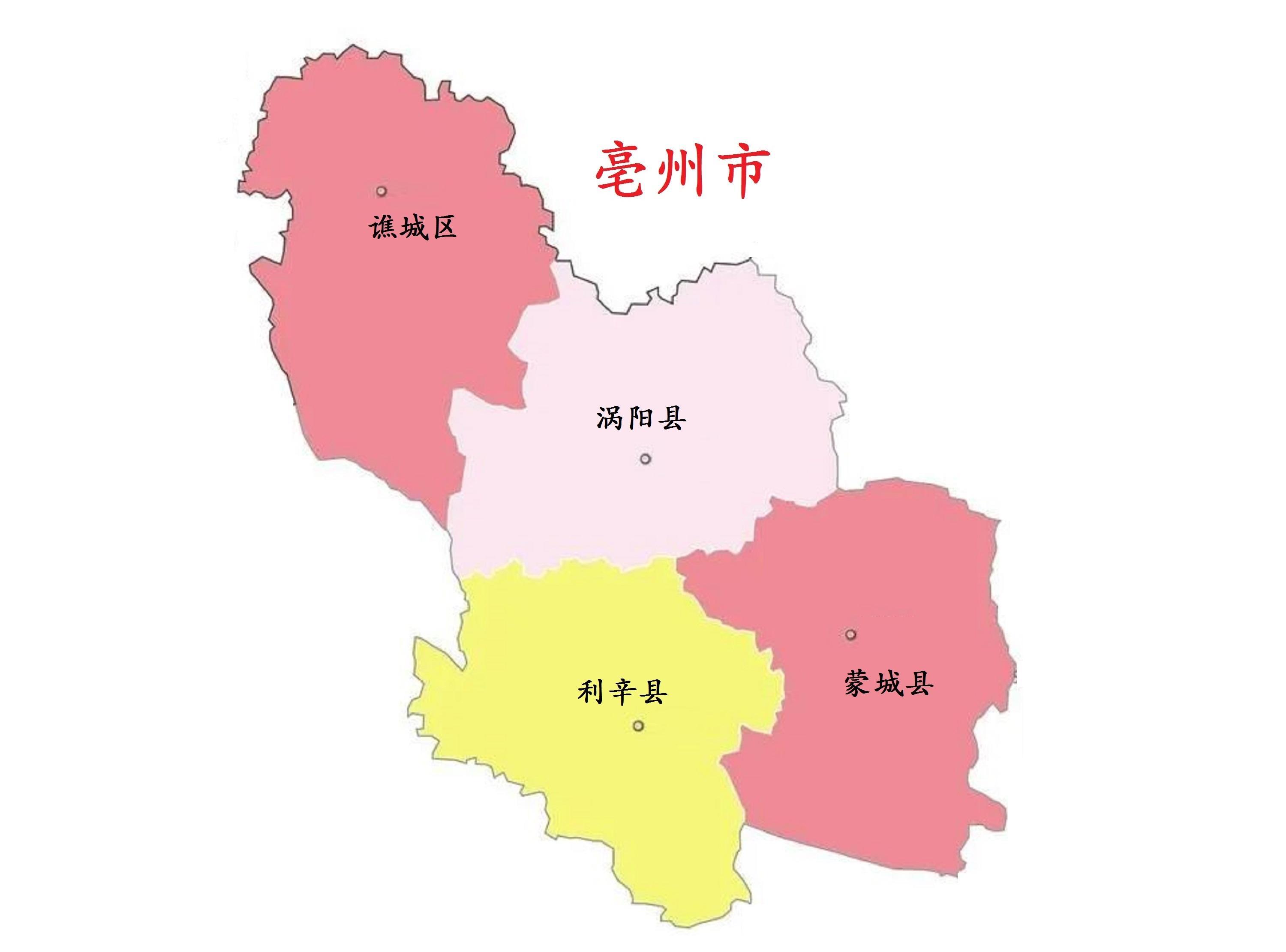 亳州市,古市政府驻谯城区。位于安徽省西北部,北依河南省商丘市,西与河南省周口市接壤,西南与阜阳市毗连,东与淮北市、蚌埠市相倚,东南与淮南市为邻。