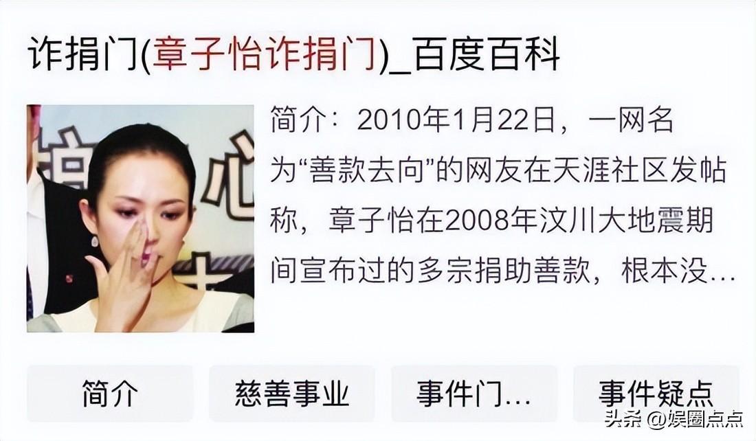2010年的诈捐门再次将她推上风口浪尖,网友发文质疑章子怡捐给汶川灾区的钱根本就没有兑现,在汶川地震发生3天后,章子怡在博客上留言,我捐100万。