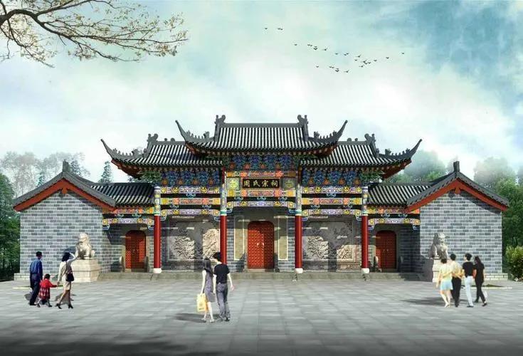 宗祠对名山左青龙右白虎祥瑞上腾万丈焰,