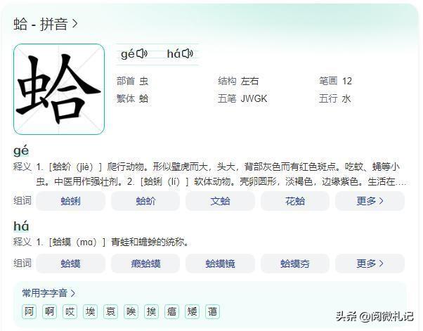但是根据“蛤”字不同的读音有不同的意思,还是可以判断出来在“蛤蜊”两个字当中,“蛤”字应该读为“ gé”的。