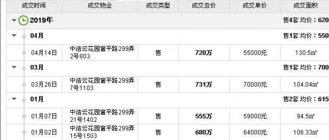 从已有数据总的看来,中浩云花园的两房成交总价基本在650万左右,三房则至少有720万。