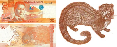麝香猫的图案登上了新版菲律宾20比索纸币。