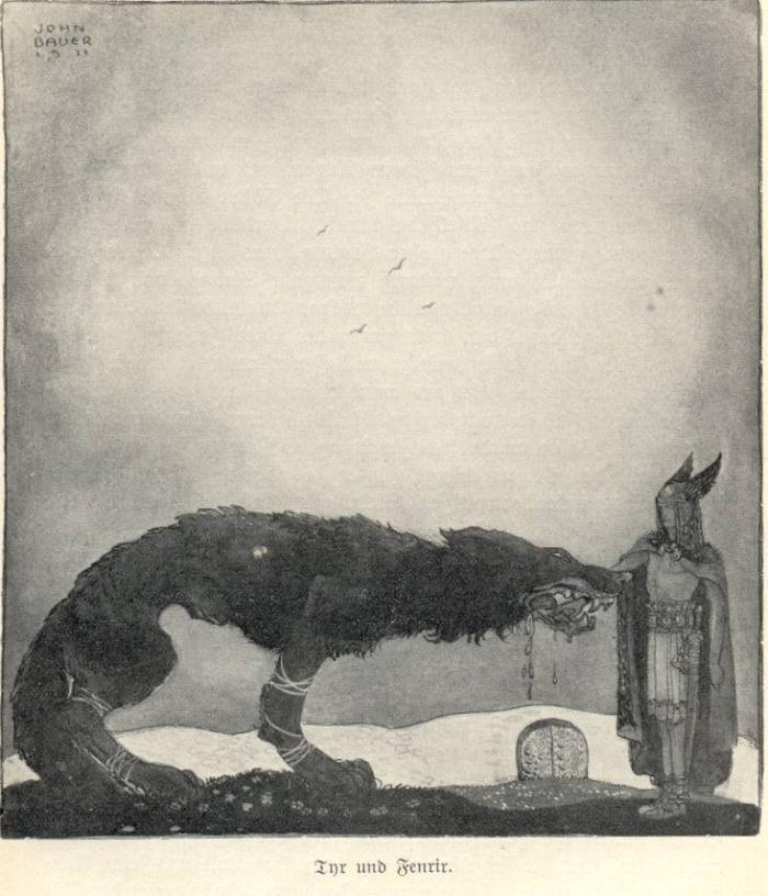 传说他是契约的担保人,盟誓的临护者。当其他的神为了将芬里尔巨狼捆绑起来的时候,提尔作为信用的保证人将手臂伸进狼的嘴里。狼发现捆绑它的众神实际上是设下圈套,立即咬断提尔的手臂。从此提尔成了独臂神。但他身佩宝剑,总显得威风凛凛。古代按剑盟誓的习俗即起源于北欧人对战神提尔的崇拜。许多传统的剑舞,都是为纪念战神而编导的。