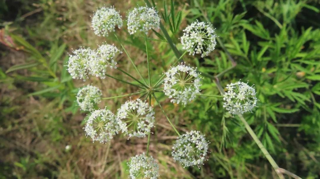 毒性强。全株有毒,根茎毒性突出。复伞形花序,白花。