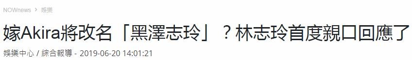 中国台湾著名模特、艺人林志玲6月初公开结婚消息,与日本乐队EXILE(放浪兄弟)成员AKIRA(黑泽良平)组成家庭。(详见日本人娶走林志玲。)虽然网上有传言称林志玲嫁人之后会按日本习俗“随夫姓”,改叫“黑泽志玲”,但林志玲本人19日在婚后首次公开露面时回应称不会改,“名字承载了文化和大家给与的爱,未来也不会有改变。”