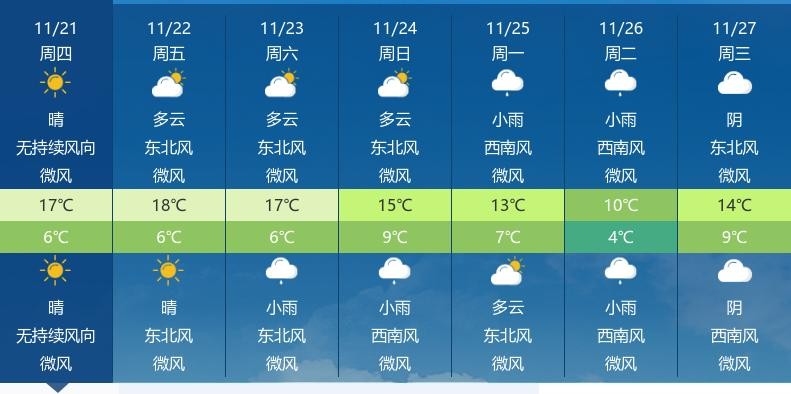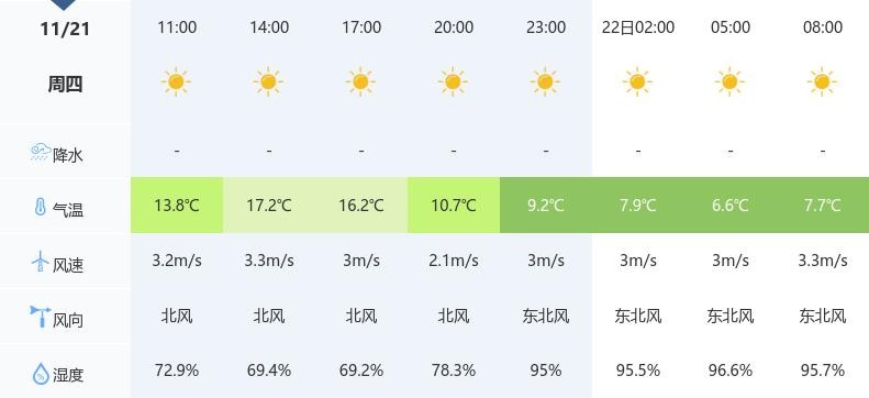 今天是2024年11月21日,武汉天气以晴朗为主,白天和夜晚均为晴天,微风,最高气温17℃,最低气温6℃,空气湿度99%,体感温度10.4℃,空气质量优。建议市民早晚出行时适当增添衣物,以免着凉。
