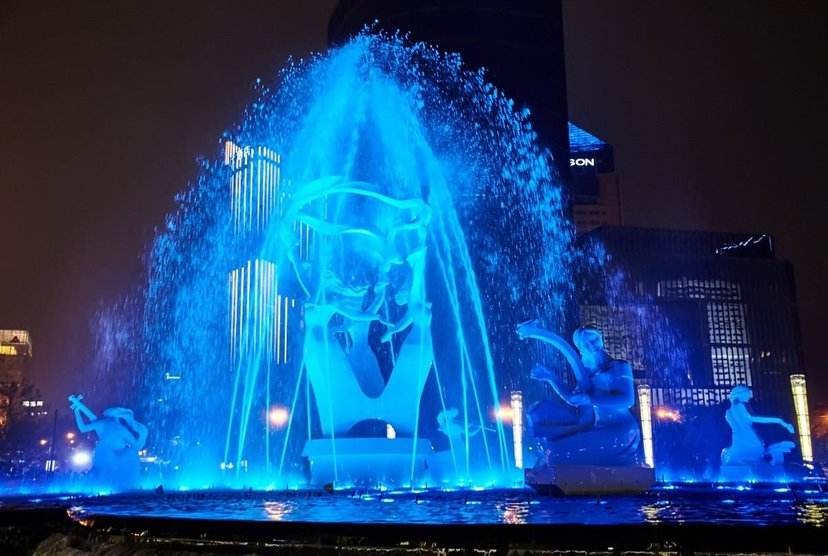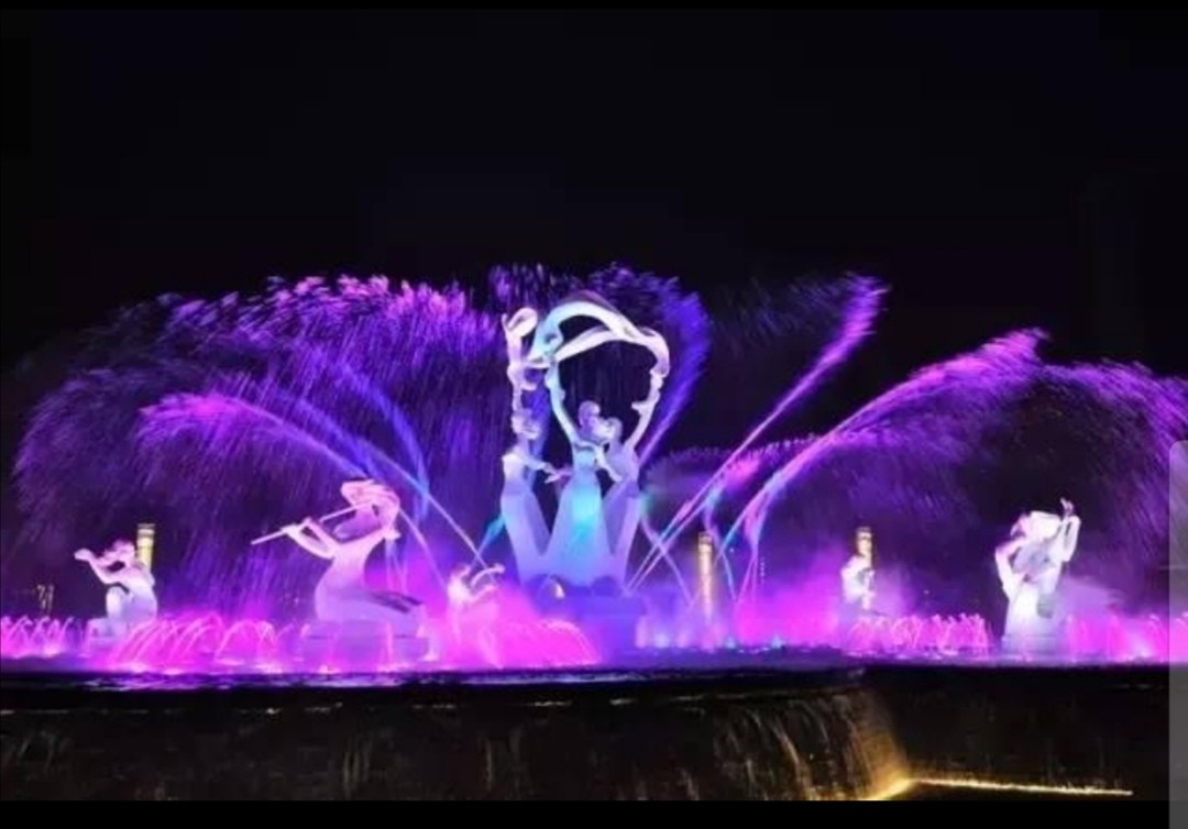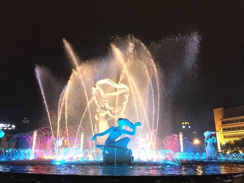 武林广场的音乐喷泉于1984年9月26日落成。喷泉呈梅花状,“花蕊”为3个跳红绸舞的少女雕像,5个“花瓣”则是5个少女雕像,分别演奏着琵琶、笙、古筝、箜篌、笛子。这个喷泉是为了纪念杭州解放而建造的。杭州是在1949年5月3日解放的,所以喷泉外面是5个手持乐器的姑娘,代表5月,而中间手拿绸带跳舞的3个姑娘,则代表3日。2006年音乐喷泉水下灯光由单色改成三色。