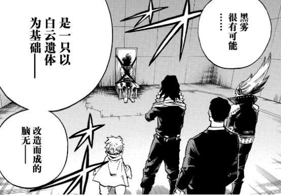接着就研究出了脑无,研究出了肉体改造技术,而黑雾就是脑无研究的成品,死柄木弔则是身体改造技术的小白鼠,如今死柄木弔已经接近实验完成,3个月后他将以全新的姿态出现在英雄面前,毁灭世界是他要做的第一件事情,除此之外,还有就是黑雾。