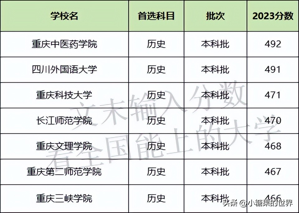 物理类最好考、收分最低的是重庆文理学院,2023最低分历史类是468分,对应位次18023;物理类是447分,对应位次67233。
