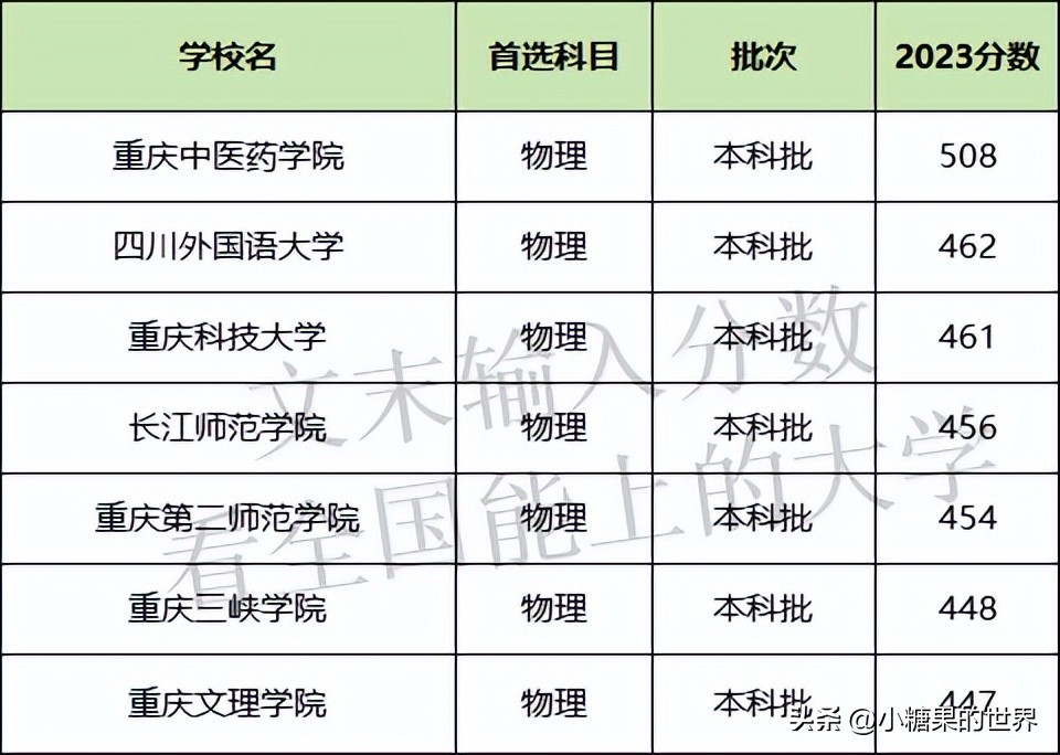 重庆所有公办二本物理类分数线表