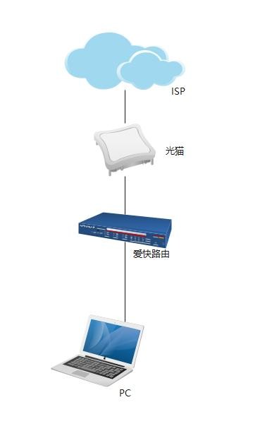 网络拓扑说明:运营商--光猫--爱快路由--PC。