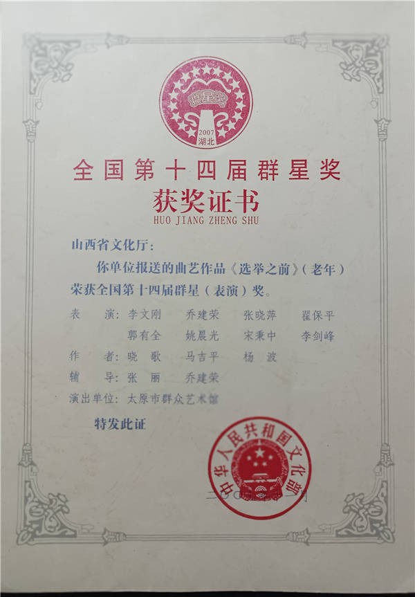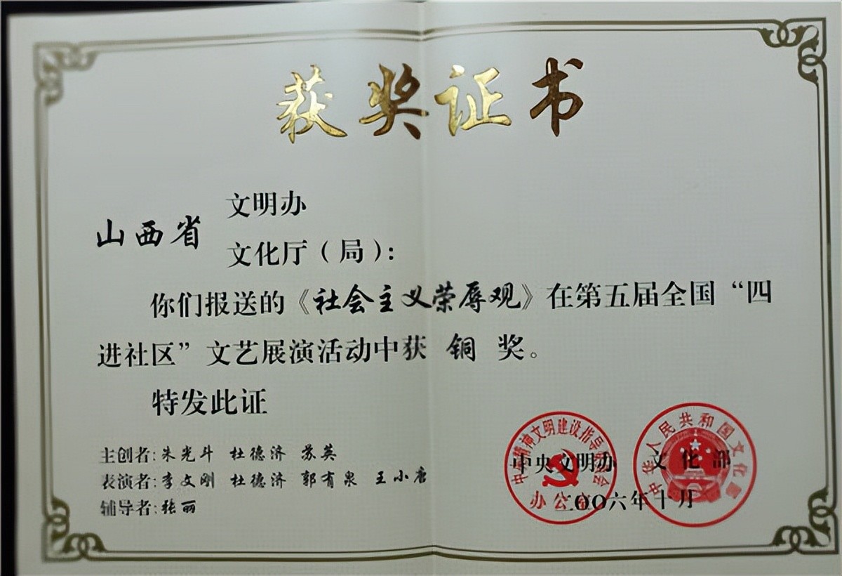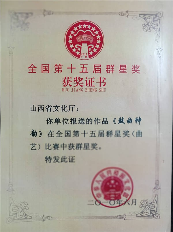 曾主演的音乐剧《三月三》获得第五届中国曲艺牡丹奖北方片优秀节目奖;辅导的京东大鼓《选举之前》获得全国第十四届“群星奖”;参演的京东大鼓《鼓曲神韵》获得全国第十五届“群星奖”;主演的小品《左邻右舍》、二人台音乐剧《今年又到三月三》获得中部六省第一届、二届曲艺大赛一等奖;编写的小戏《天使魂》获得全国“中华颂一一小戏、小品、曲艺大展”一等奖;改编、导演的晋剧《金钗案》上下本获得山西省第十三届“杏花奖”导演奖;辅导的少儿书法获得山西省第十一届少儿书画新人新作展一等奖,本人获得优秀教师奖等。太原市劳动委員会荣记二等功;导演的二人台小戏《捏花馍》参加了2014年山西省电视台春节联欢晚会;导演了由中国民间文艺家协会主办,山西省和顺县委承办的2019 “我们的节日”牛郎织女情歌演唱会;2018、2019、2020年连续三年参加了戏曲进校园活动,担任主讲老师。