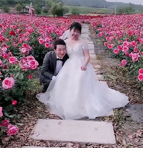 他们拍婚纱照的地方,是一片粉色的月季花园,被鲜花包围着的余秀华非常开心,杨储策站在她旁边,两人脸上都挂着开心的笑容。